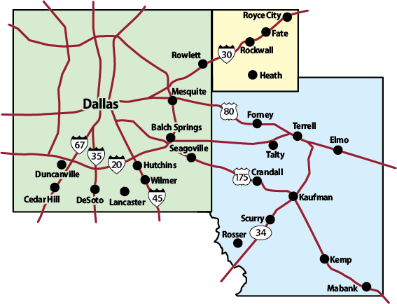 Origin to destination rides are available to the public in and around Kaufman County, Rockwall County, Balch Springs, Mesquite, Seagoville, DeSoto, Cedar Hill, Duncanville, Hutchins, Lancaster and Wilmer.